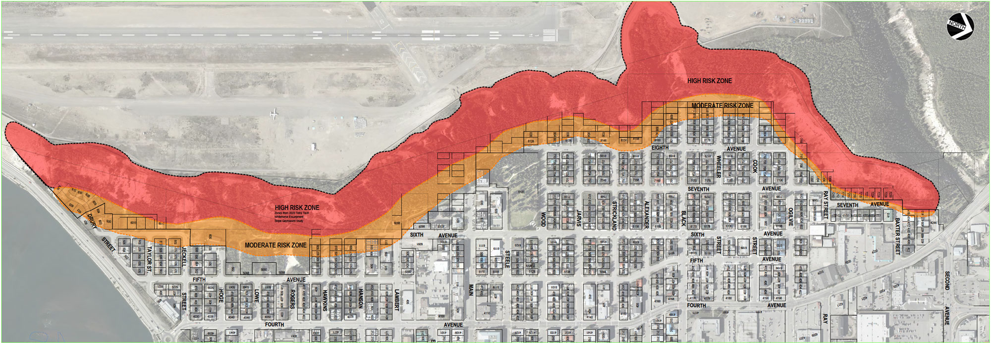 There continues to be a risk of landslides along the escarpment and Robert Service Way, as occurred in 2022 and 2023.